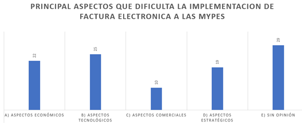 Gráfico 1: Principales aspectos que dificultan la implementación de Factura Electrónica en las MYPES